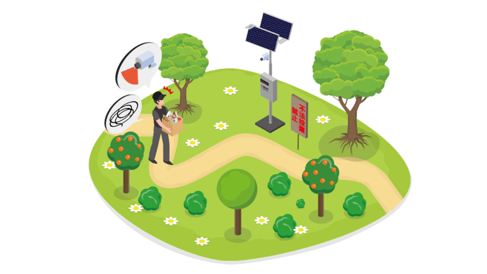 監視カメラを設置することで、不法投棄の発生を抑止します。
