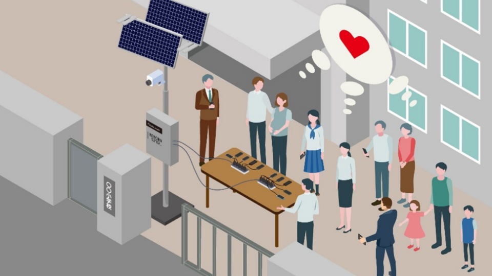 また、非常用電源としてスマートフォンなら同時に最大30台、1日最大300人分の充電が可能です