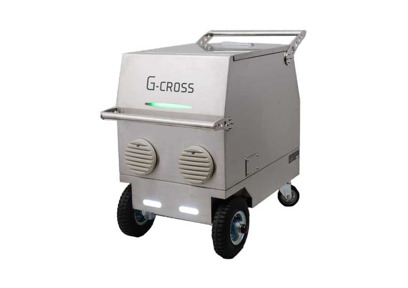 G-CROSSのバッテリーは詰め替える(リフィル)ことが出来ます。バッテリーの本数分だけ容量を無制限に増やすことが可能です。バッテリーを詰め替える際、出力の瞬停(瞬断)を起こしません。無瞬断でのバッテリー交換が可能です。本体重量は人の手で動かせる約58kg。大人二人で車両への積み下ろし、階段による移動も可能です。IP45相当の防塵・防水性能。さらに排ガス・騒音が一切発生しないため、屋内外問わず使用が可能です。 -
