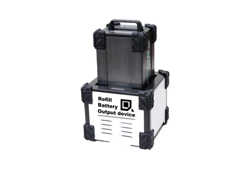 空になったバッテリーは通電エリアに持ち帰り充電します。この繰り返しにより半永久的に出力が可能です。