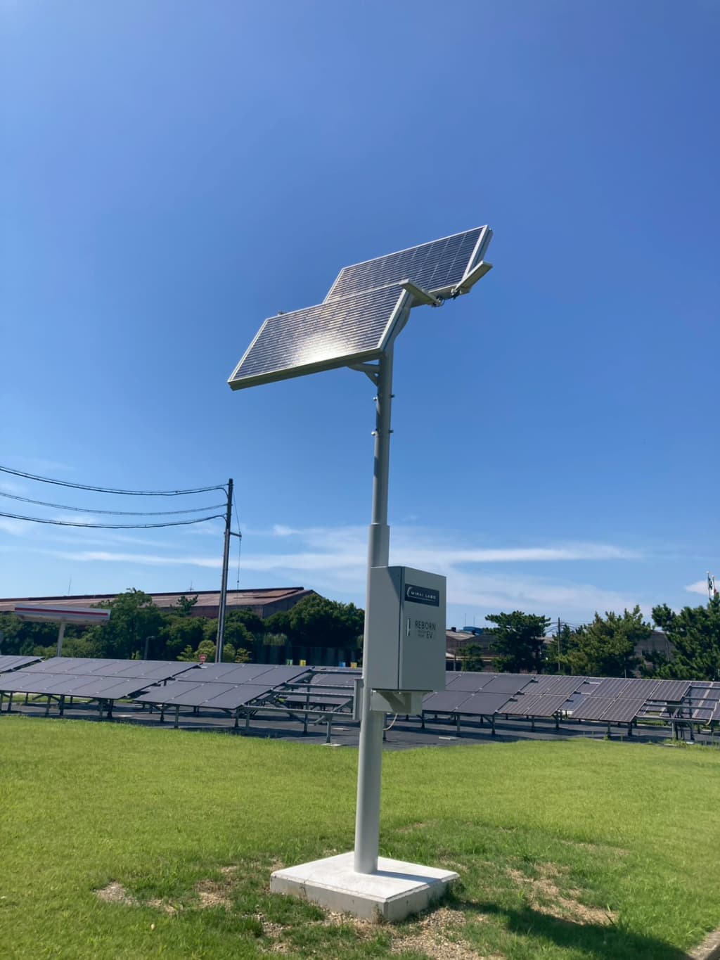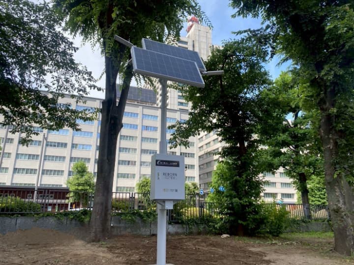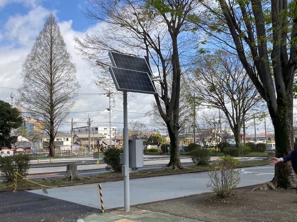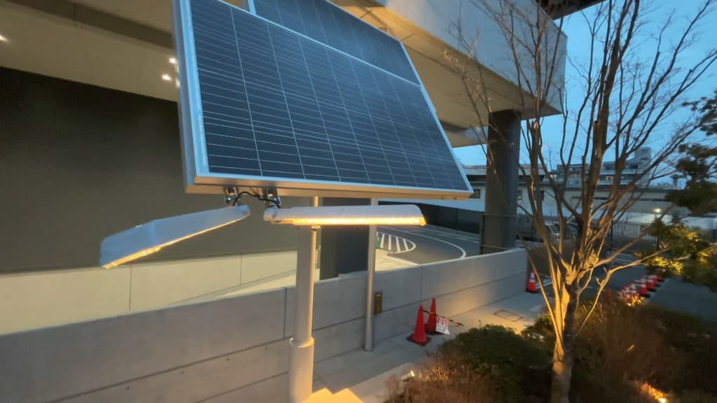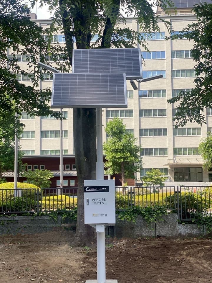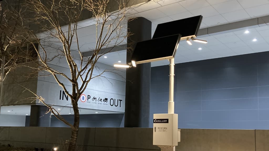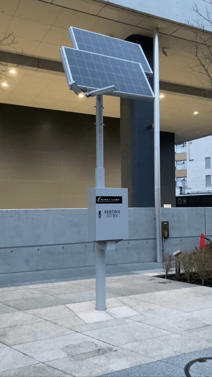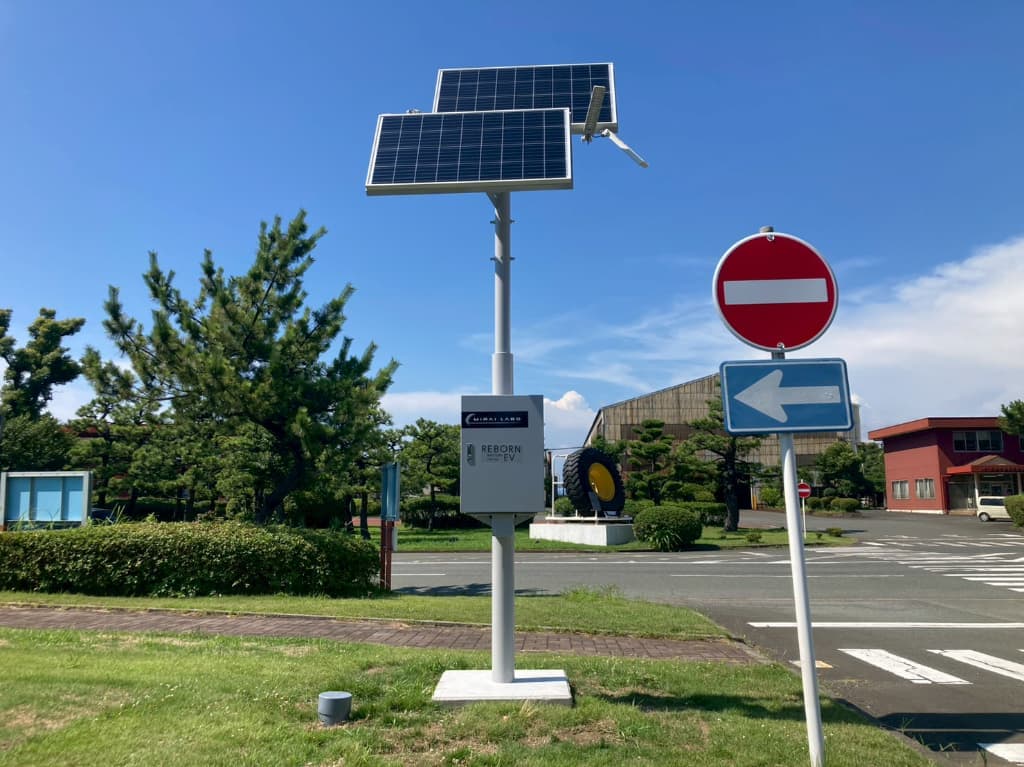 電気自動車(EV)の廃バッテリーをMIRAI-LABOの技術で再利用した環境にやさしい自律型ソーラー街路灯。