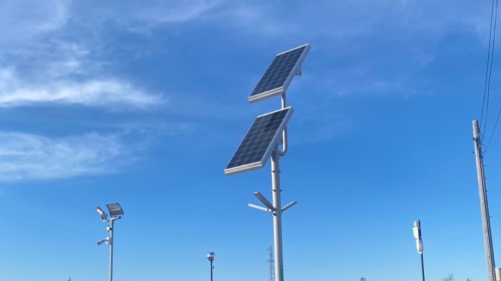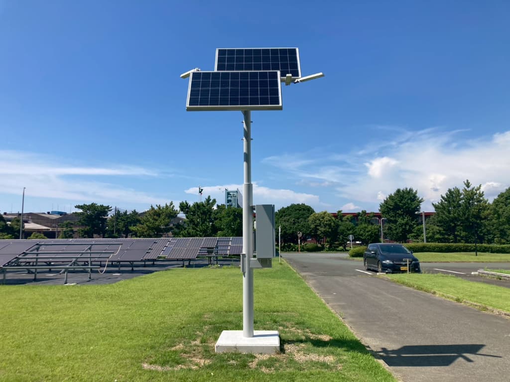 電源が無い場所にも簡単に設置ができ、カメラや通信、センサーなど様々な機器を接続してスマートポールとして活用することも可能です。