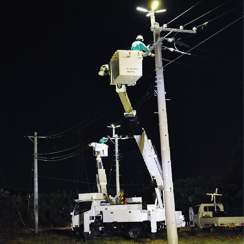 夜間工事、トンネル作業、計画停電の照明として使用されています。騒音や排ガスを出せない、電源が取れないなどの状況下で活躍しています。