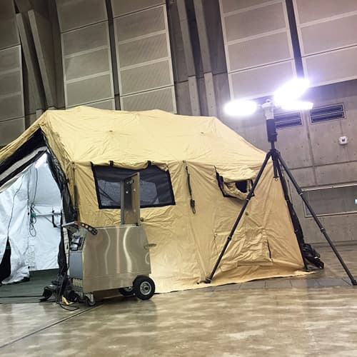 避難所などで停電時の非常用照明として使用されています。また、災害救助など悪環境な災害現場でも救助用照明として使用されています。