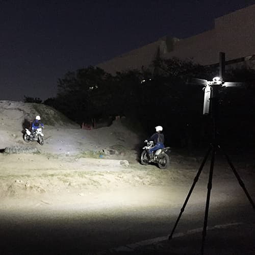 影ができづらい特殊な配光設計。脱着式のバッテリーを有し長時間の連続投光を実現。