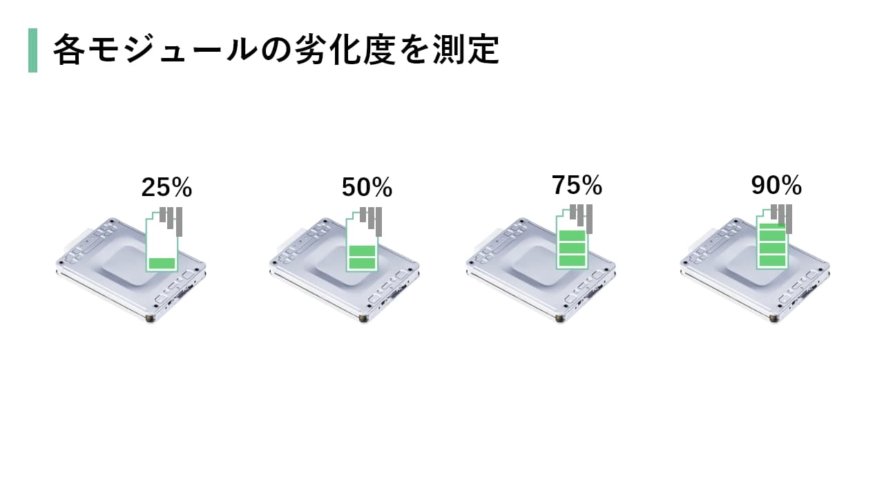 MIRAI-LABOはこのEVの廃バッテリーの劣化診断を行い、ユニット化することで様々な製品へ再製品化(リパーパス)します。