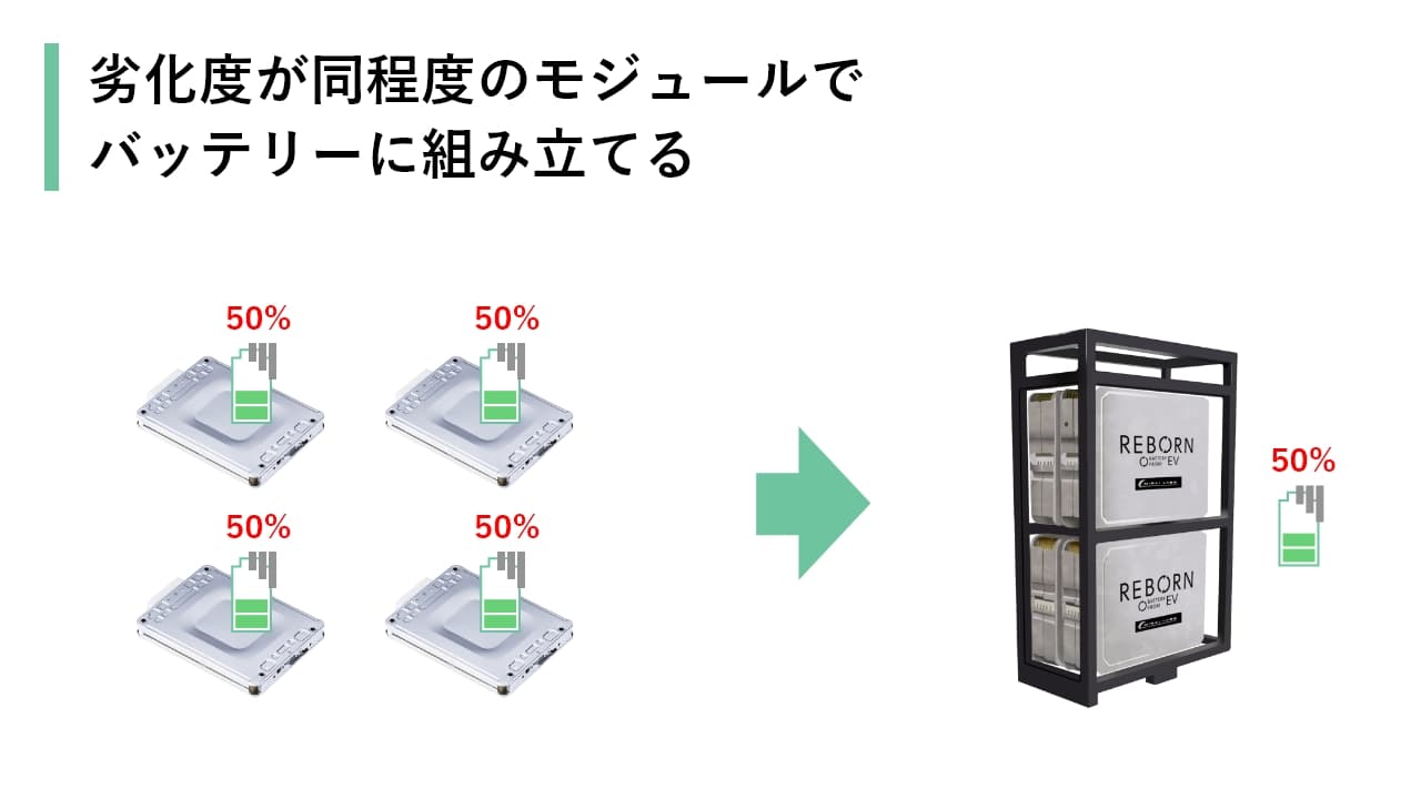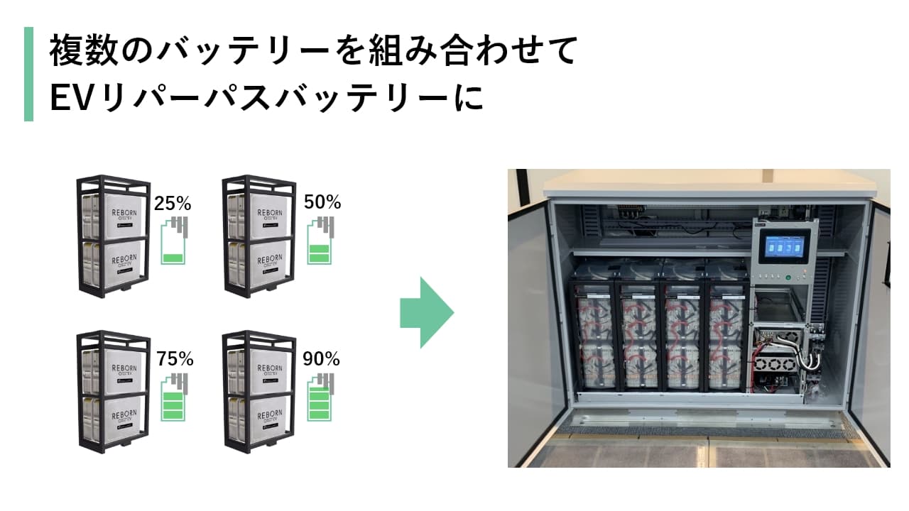 高性能で耐久性に優れているものの、劣化により走行距離が短くなると取り外され破棄されるEVバッテリー。